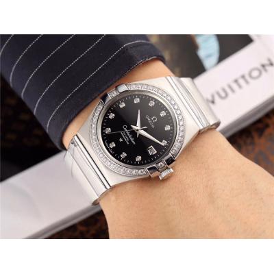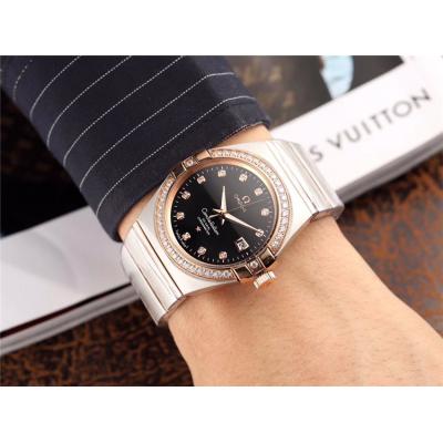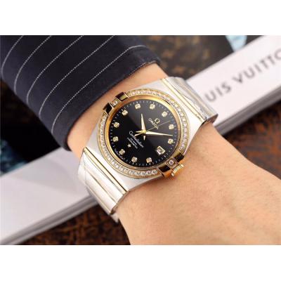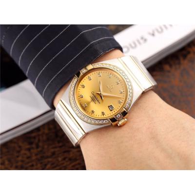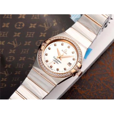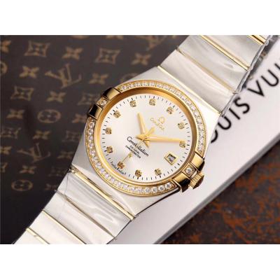 Replica Constellation A21j Automatic Mens Watch White Dial Diamonds Case Two Tone Yellow Gold A E62