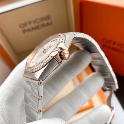 Home AAA-Brand Replica Constellation A21j Automatic Movement Mens Watch Silver Dial Diamonds Case Two Tone Rose Gold B E373