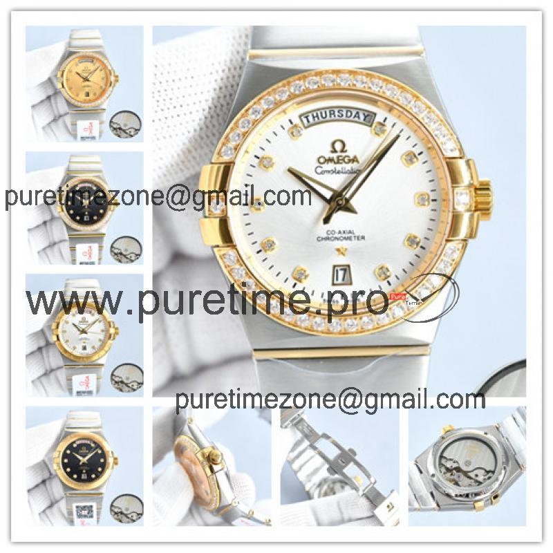 Replica Constellation Japan Miyota 8285 Automatic Mens Watch Silver Dial Diamonds Case Two Tone Yellow Gold D E441