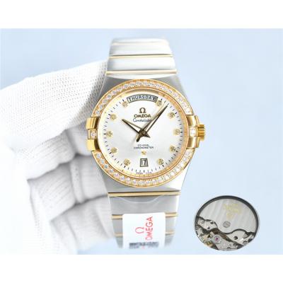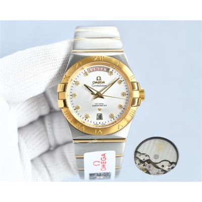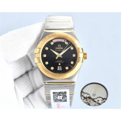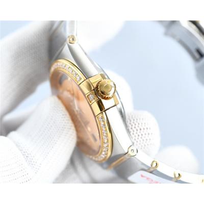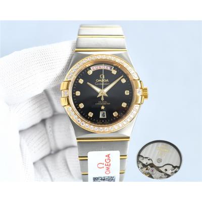 Home AAA-Brand Replica Constellation Japan Miyota 8285 Automatic Mens Watch Silver Dial Diamonds Case Two Tone Yellow Gold D E441