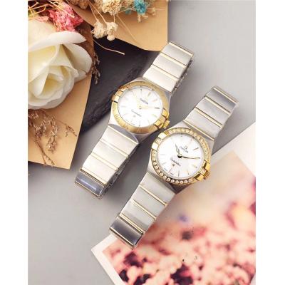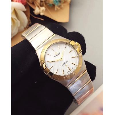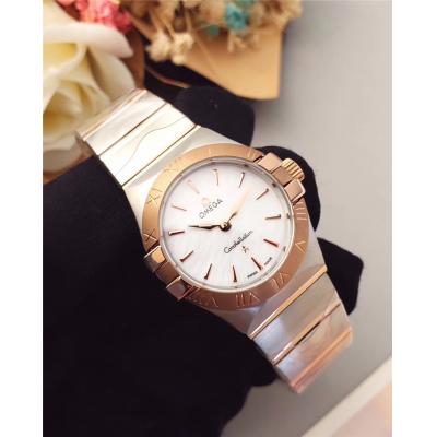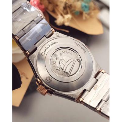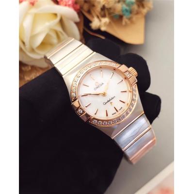 Home AAA-Brand Replica Constellation Swiss Quartz Movement Womens Watch White Dial Diamonds Case Two Tone Rose Gold D E24