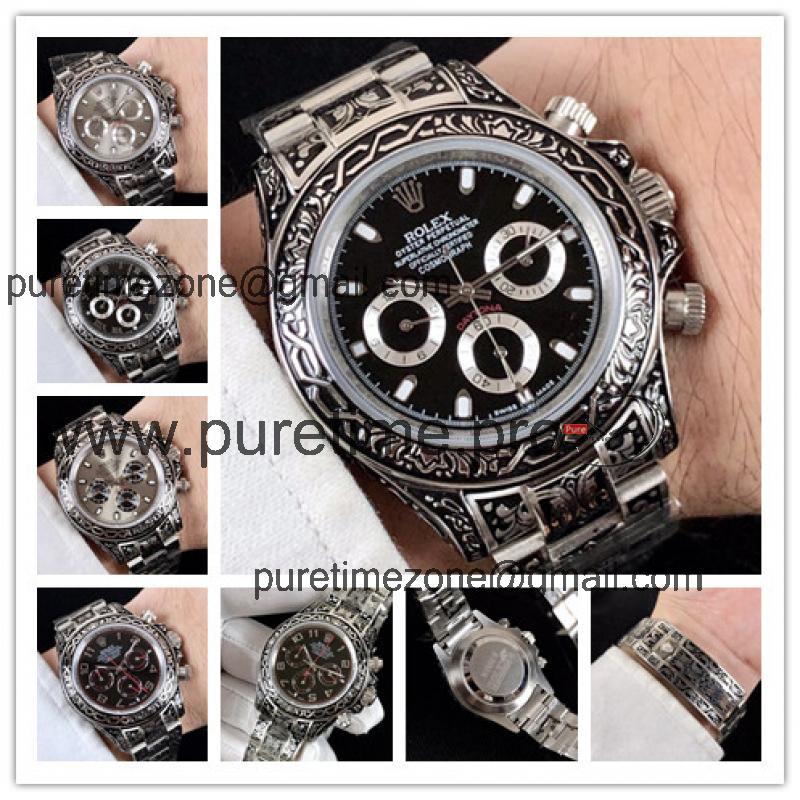 Replica Cosmograph Daytona A21J Automatic Mens Watch Black Dial Vintage Engraving Bracelet SS B E168
