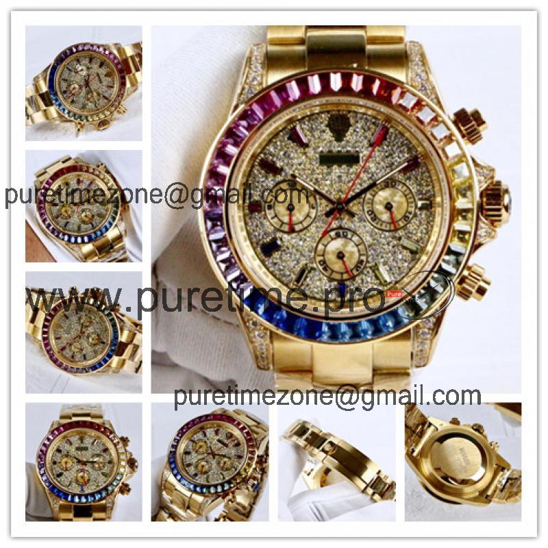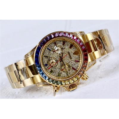 Replica Cosmograph Daytona A21J Automatic Mens Watch Full Diamonds Dial Oyster Bracelet Yellow Gold E160