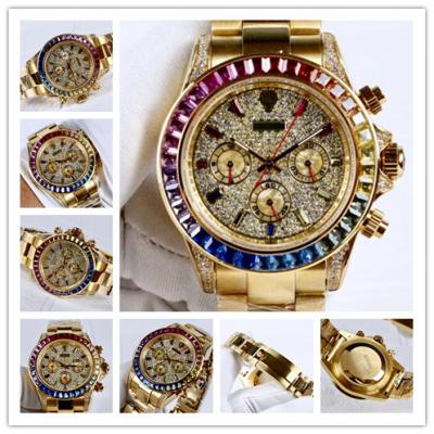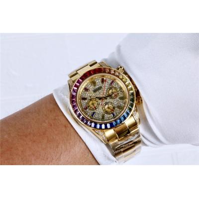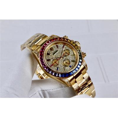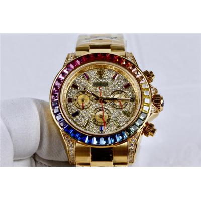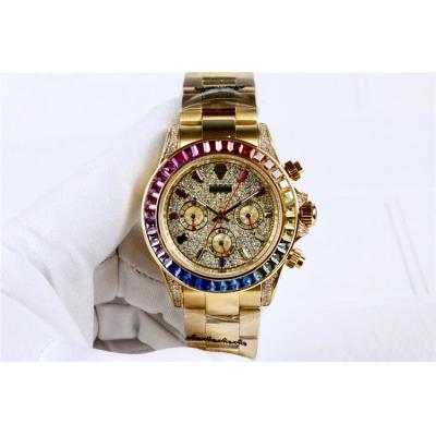 Home AAA-Brand Replica Cosmograph Daytona A21J Automatic Mens Watch Full Diamonds Dial Oyster Bracelet Yellow Gold E160