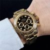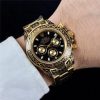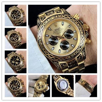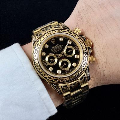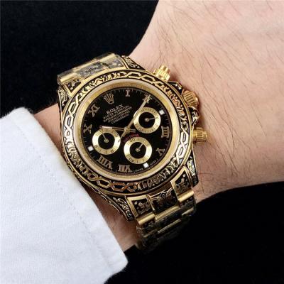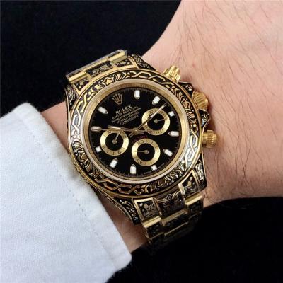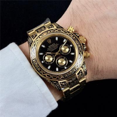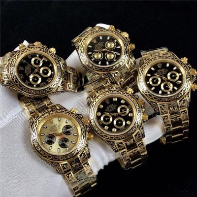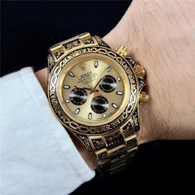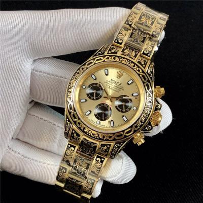 Replica Cosmograph Daytona A21J Automatic Mens Watch Gold Dial Vintage Engraving Bracelet Yellow Gold D E168