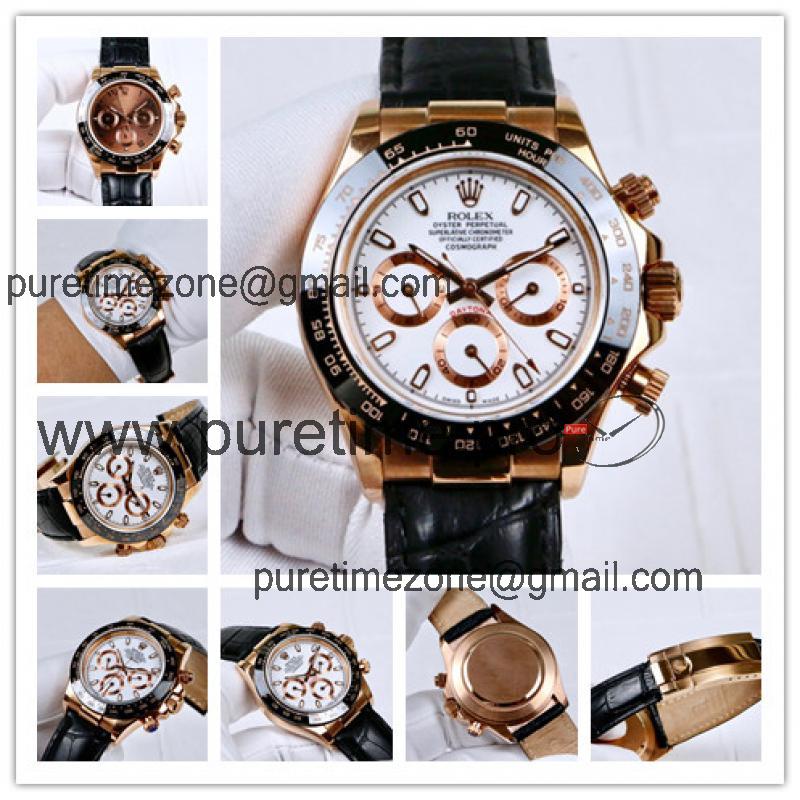 Replica Cosmograph Daytona A21J Automatic Mens Watch White Dial Leather Strap E164