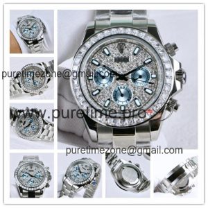 Replica Cosmograph Daytona A21J Automatic Mens Watch Full Diamonds Dial Oyster Bracelet SS E165 $192.00 $160.00