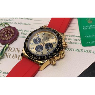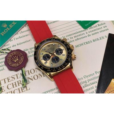 Replica Cosmograph Daytona A21J Automatic Movement Mens Watch Gold Dial Rubber Strap E110