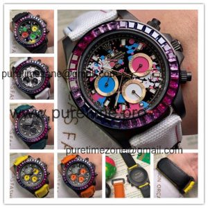Replica Cosmograph Daytona A21J Automatic Movement Mens Watch Graffiti Dial Nylon Strap E106 $192.00 $160.00