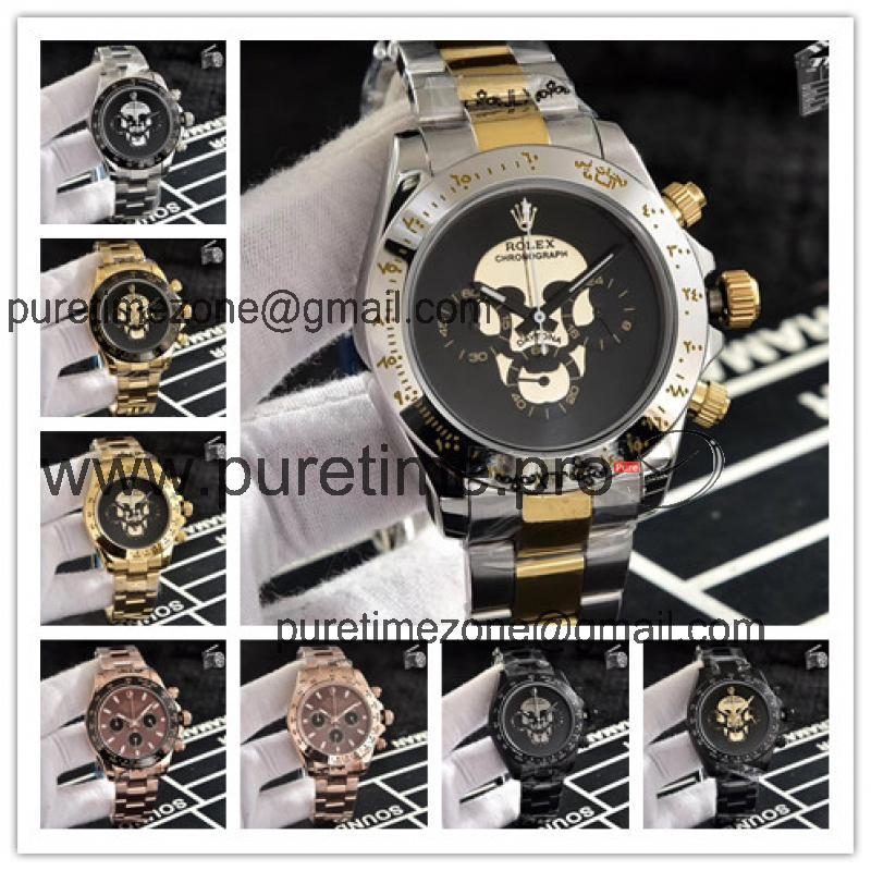 Replica Cosmograph Daytona Japan Quartz Chronograph Mens Watch Skull Graffiti Dial Rubber Strap E132