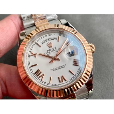 Replica Day-Date A2813 Automatic Movement Mens Watch White Dial Oyster Bracelet Rose Gold E143