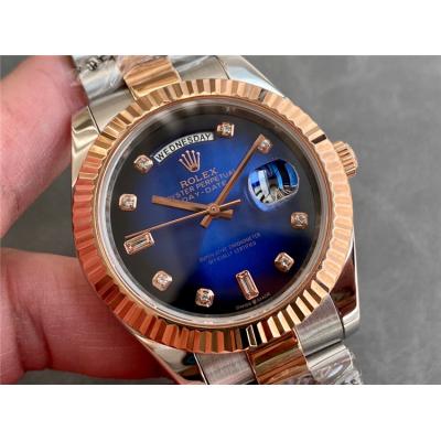 Replica Day-Date A21j Automatic Movement Mens Watch Blue Dial Oyster Bracelet Rose Gold A E332
