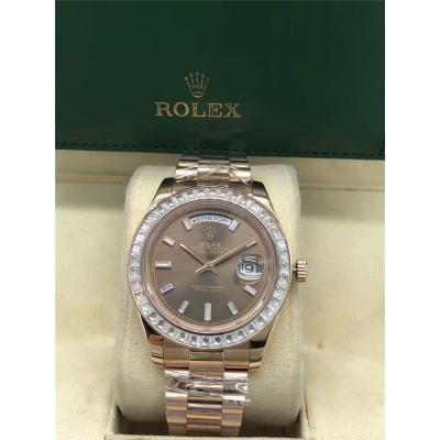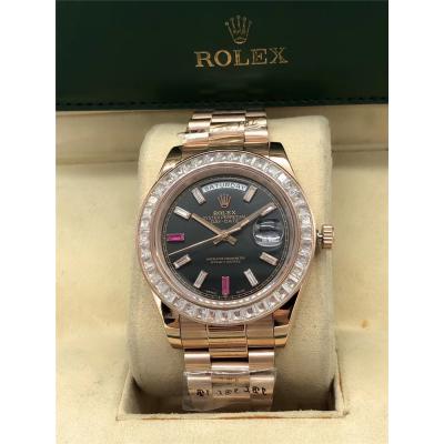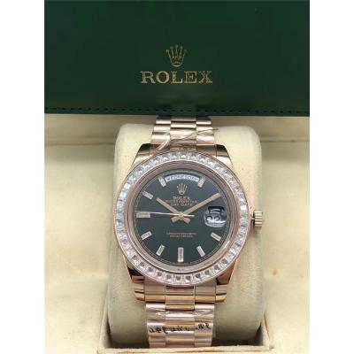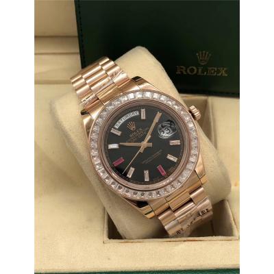 Replica Day-Date A2813 Automatic Movement Mens Watch Black Dial Oyster Bracelet Rose Gold B E214