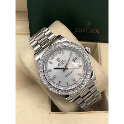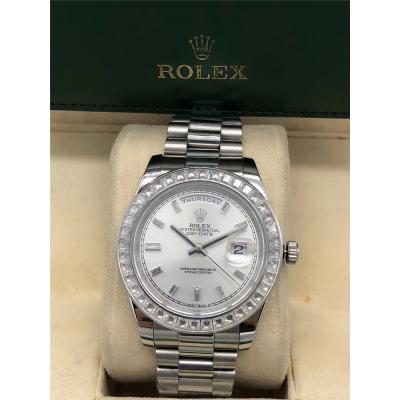 Replica Day-Date A2813 Automatic Movement Mens Watch White Dial Oyster Bracelet Rose Gold E143