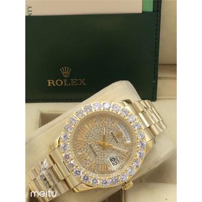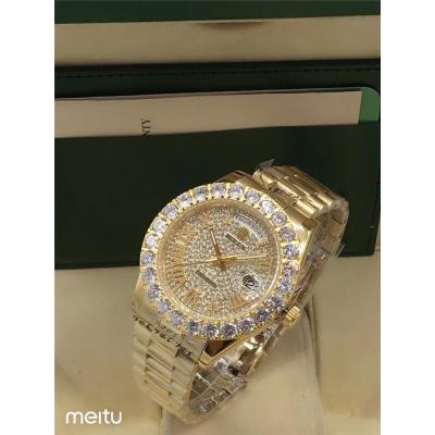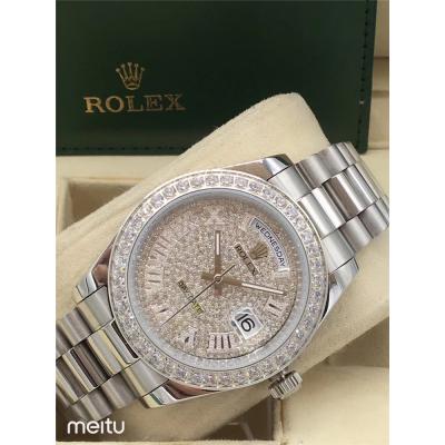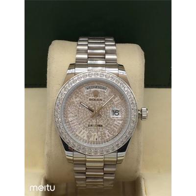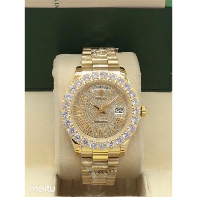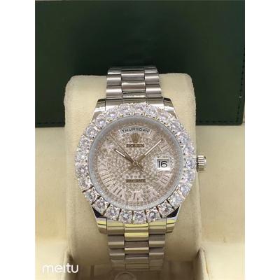 Replica Day-Date A2813 Automatic Movement Mens Watch Full Diamonds Dial Oyster Bracelet SS E16 $192.00 $160.00