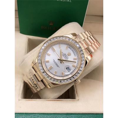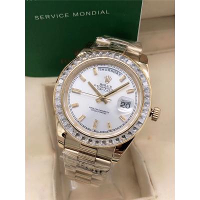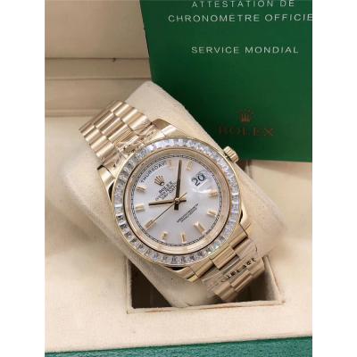Replica Day-Date A2813 Automatic Movement Mens Watch White Dial Oyster Bracelet Rose Gold E143