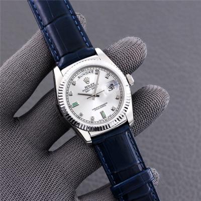 Replica Day-Date A2836 Automatic Movement Mens Watch Ice Blue Dial Leather Strap A E402