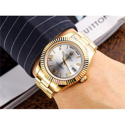 Home AAA-Brand Replica Day-Date Miyota 8285 Automatic Movement Mens Watch Silver Dial Oyster Bracelet Yellow Gold C E45