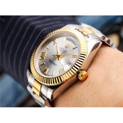 Replica Day-Date Miyota 8285 Automatic Movement Mens Watch Silver Dial Oyster Bracelet Yellow Gold C E45