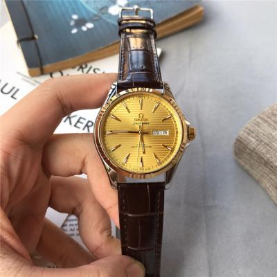 Home AAA-Brand Replica De Ville Japan Miyota 8215 Automatic Movement Mens Watch Gold Dial Leather Strap B E93