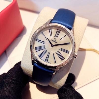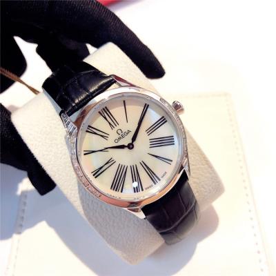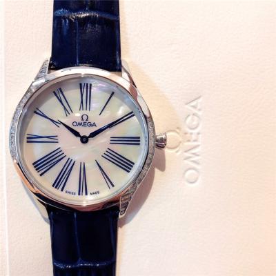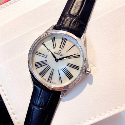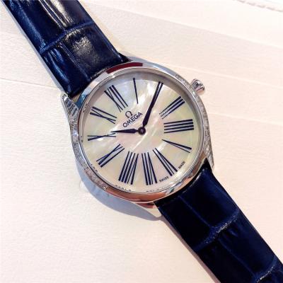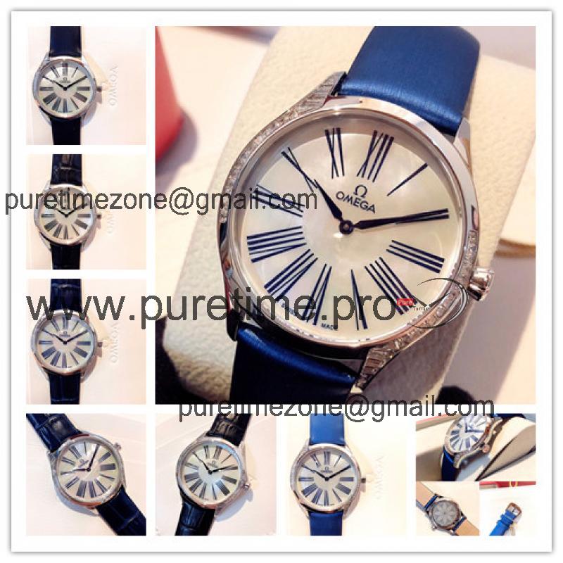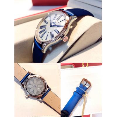 Home AAA-Brand Replica De Ville Swiss Quartz Movement Womens Watch MOP Dial Diamonds Case Leather Strap A E132