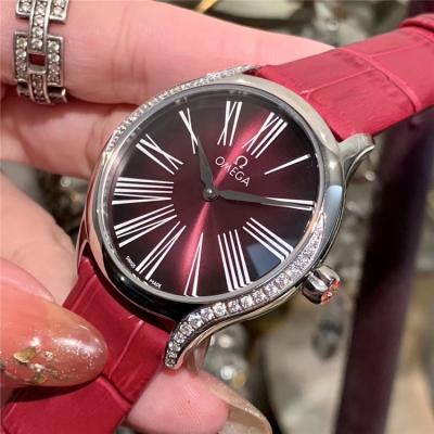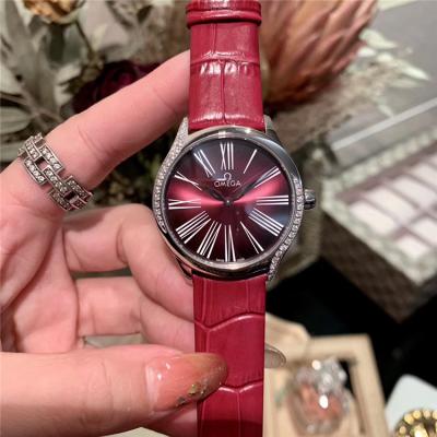 Home AAA-Brand Replica De Ville Swiss Quartz Movement Womens Watch Purple Dial Diamonds Case Leather Strap E294