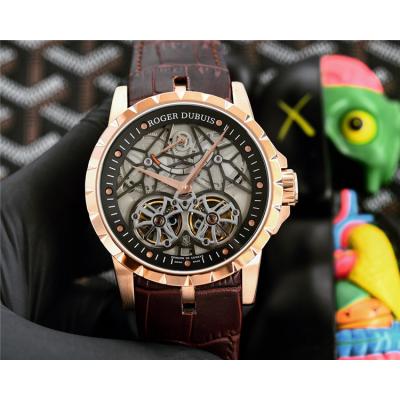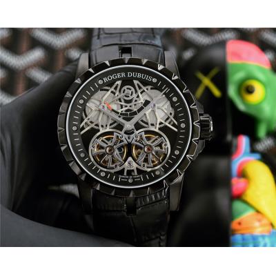 Home AAA-Brand Replica Excalibur A21j Automatic Movement Mens Watch Double Tourbillon Dial Leather Strap E94