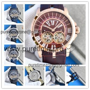 Replica Excalibur A21j Automatic Movement Mens Watch Double Tourbillon Dial Leather Strap E101 $276.00 $230.00