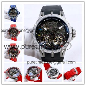 Replica Excalibur A21j Automatic Movement Mens Watch Double tourbillon Dial Diamonds Case Rubber Strap A E14 $312.00 $260.00