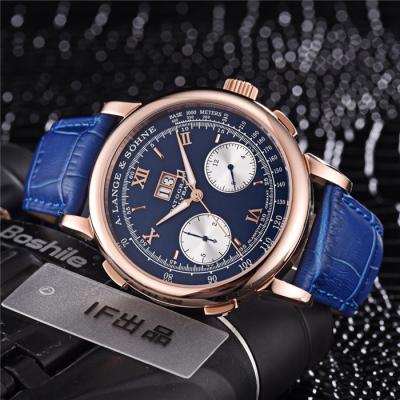 Replica SaxoniaA21j Automatic Movement Mens Watch Blue Dial Leather Strap A E02