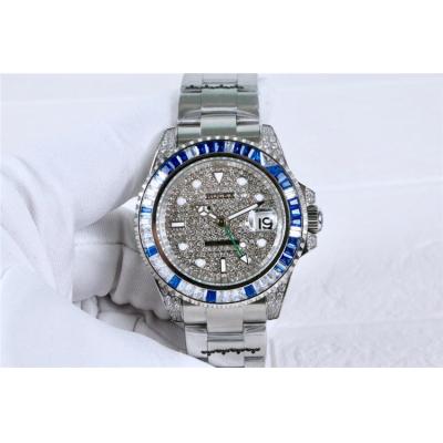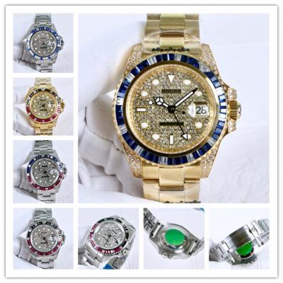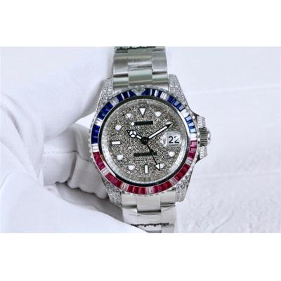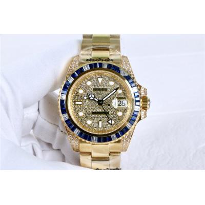 Home AAA-Brand Replica GMT-MASTER A21J Automatic Movement Mens Watch Full Diamonds Dial Oyster Bracelet Yellow Gold E40