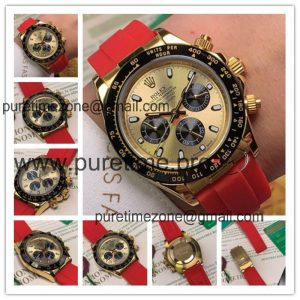 Replica Cosmograph Daytona A21J Automatic Movement Mens Watch Gold Dial Rubber Strap E110 $174.00 $145.00