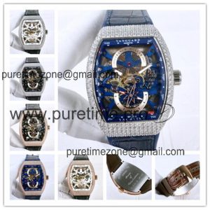 Replica Yachting A21j Automatic Movement Mens Watch Skeleton Dial Diamonds Case Leather Strap E41 $216.00 $180.00