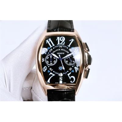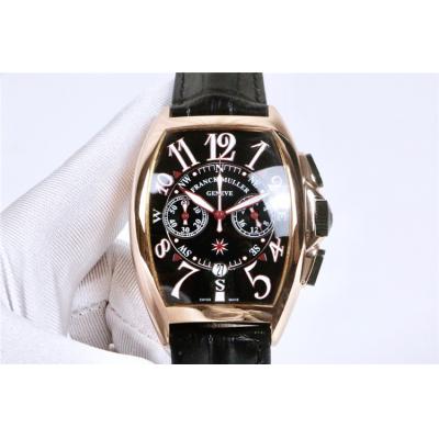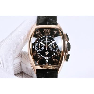 Replica Grand Complication Japan Quartz Chronograph Movement Mens Watch Black Dial Leather Strap E42