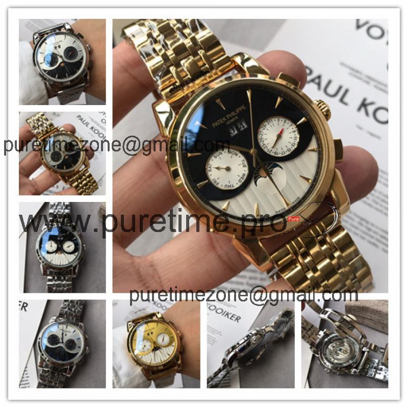 Replica Grand Complications A21j Automatic Movement Mens Watch Black White Dial Yellow Gold B E37