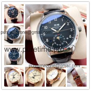 Replica Grand Complications A21j Automatic Movement Mens Watch Black Dial Leather Strap E195 $360.00 $300.00