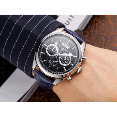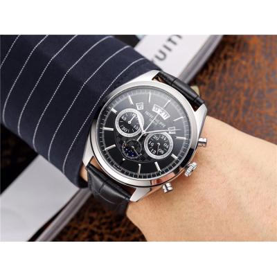 Home AAA-Brand Replica Grand Complications Japan OS Quartz Chronograph Movement Mens Watch Black Dial Leather Strap B E35