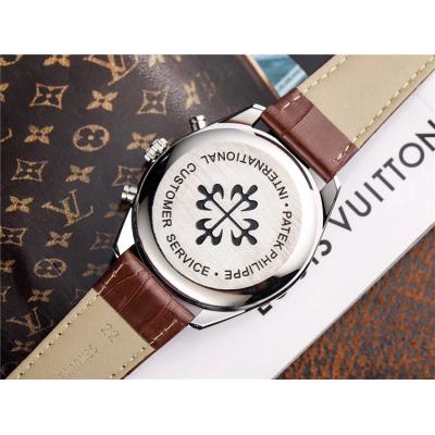 Replica Grand Complications Japan OS Quartz Chronograph Movement Mens Watch Black Dial Leather Strap B E35
