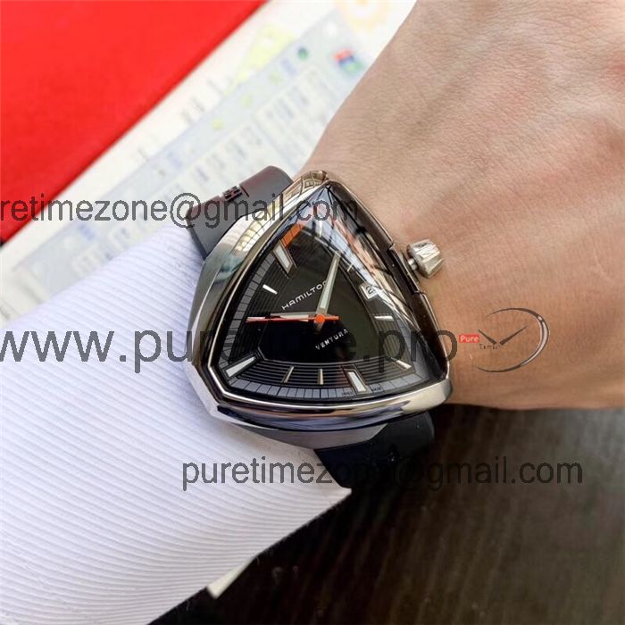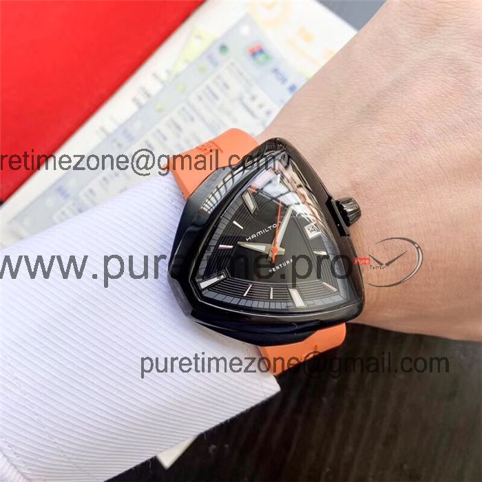 Home AAA-Brand Replica Hamilton Ventura Elvis80 H24585331 A2824 Automatic Mens Watch PVD Steel Black Dial Rubber