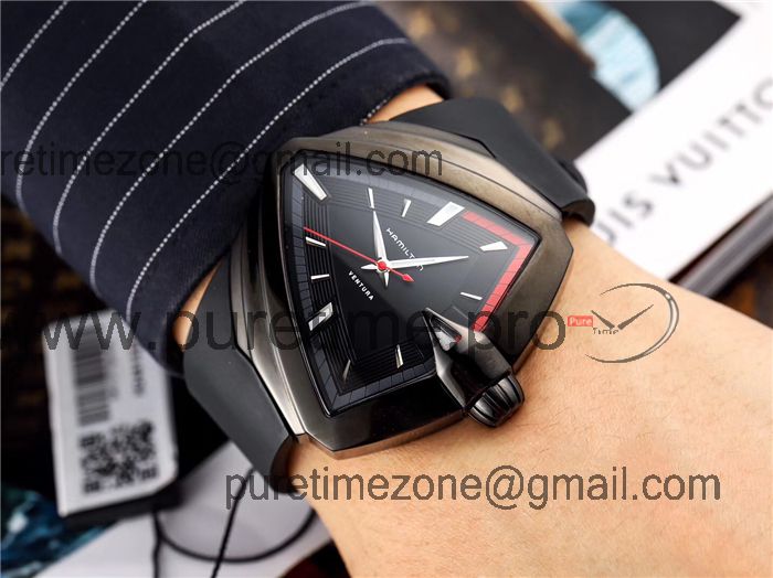 Replica Hamilton Ventura Elvis80 H24585331 A2824 Automatic Mens Watch PVD Steel Black Dial Rubber