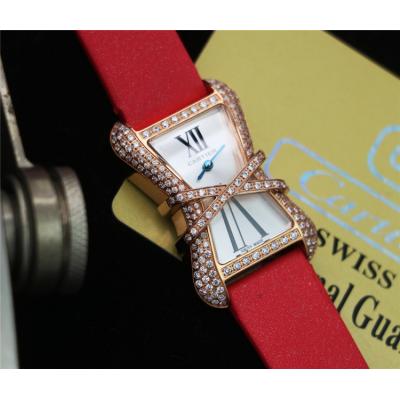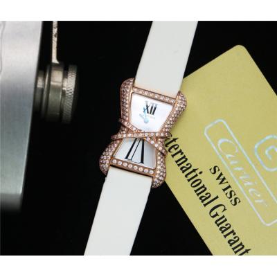 Home AAA-Brand Replica High Jewelry Swiss Quartz Movement Womens Watch White Dial Leather Strap A E125