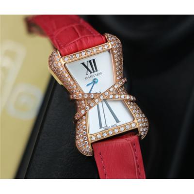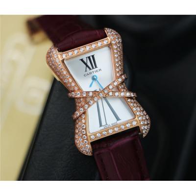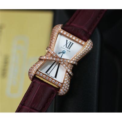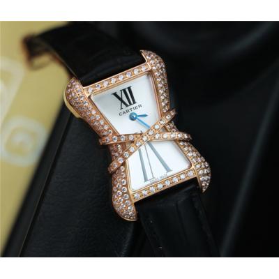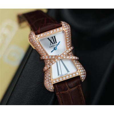 Home AAA-Brand Replica High Jewelry Swiss Quartz Movement Womens Watch White Dial Leather Strap C E125