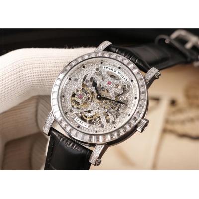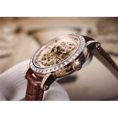 Replica Infinity ronde A21j Automatic Movement Mens Watch Diamonds Skeleton Dial Leather Strap E18