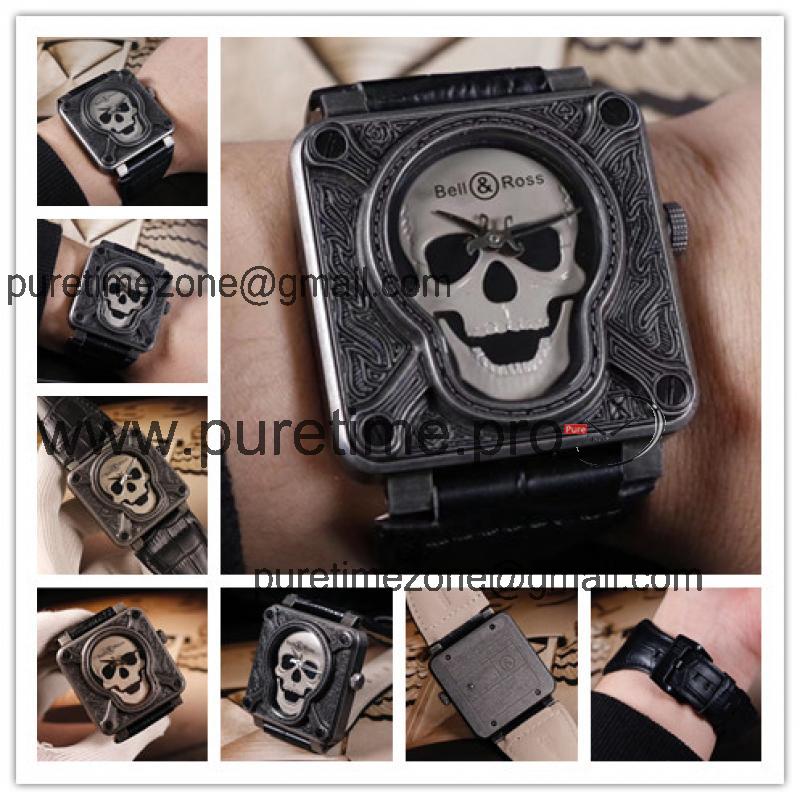 Replica Instruments A21J Automatic Movement Mens Watch Skull Dial Leather Strap E01
