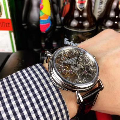 Replica Les Cabinotiers A21j Automatic Movement Mens Watch Skeleton Dial Diamonds Case Leather Strap E106