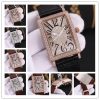 Replica Long Island Swiss Quartz Movement Womens Watch White Dial Full Diamonds Case Leather Strap E104 $180.00 $150.00