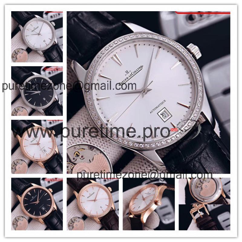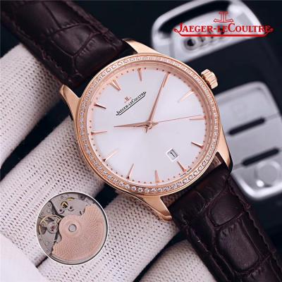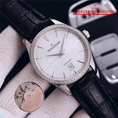 Home AAA-Brand Replica Master Ultra Thin A21j Automatic Movement Mens Watch White Dial Diamonds Case Leather Strap A E165