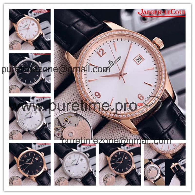 Replica Master Ultra Thin A21j Automatic Movement Mens Watch White Dial Diamonds Case Leather Strap E166