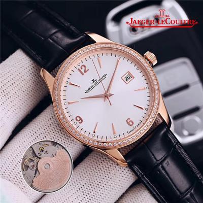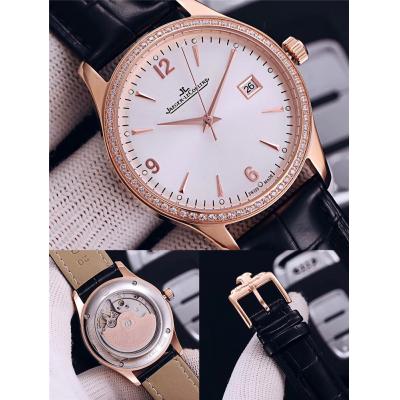 Home AAA-Brand Replica Master Ultra Thin A21j Automatic Movement Mens Watch White Dial Diamonds Case Leather Strap E166