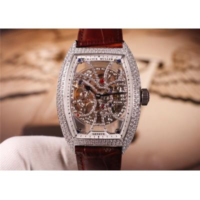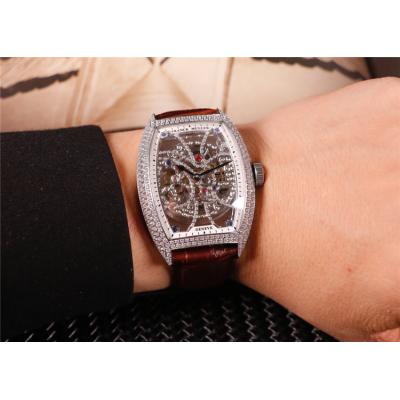 Replica Models A21j Automatic Movement Mens Watch Skeleton Diamonds Dial Diamonds Case Leather Strap E35